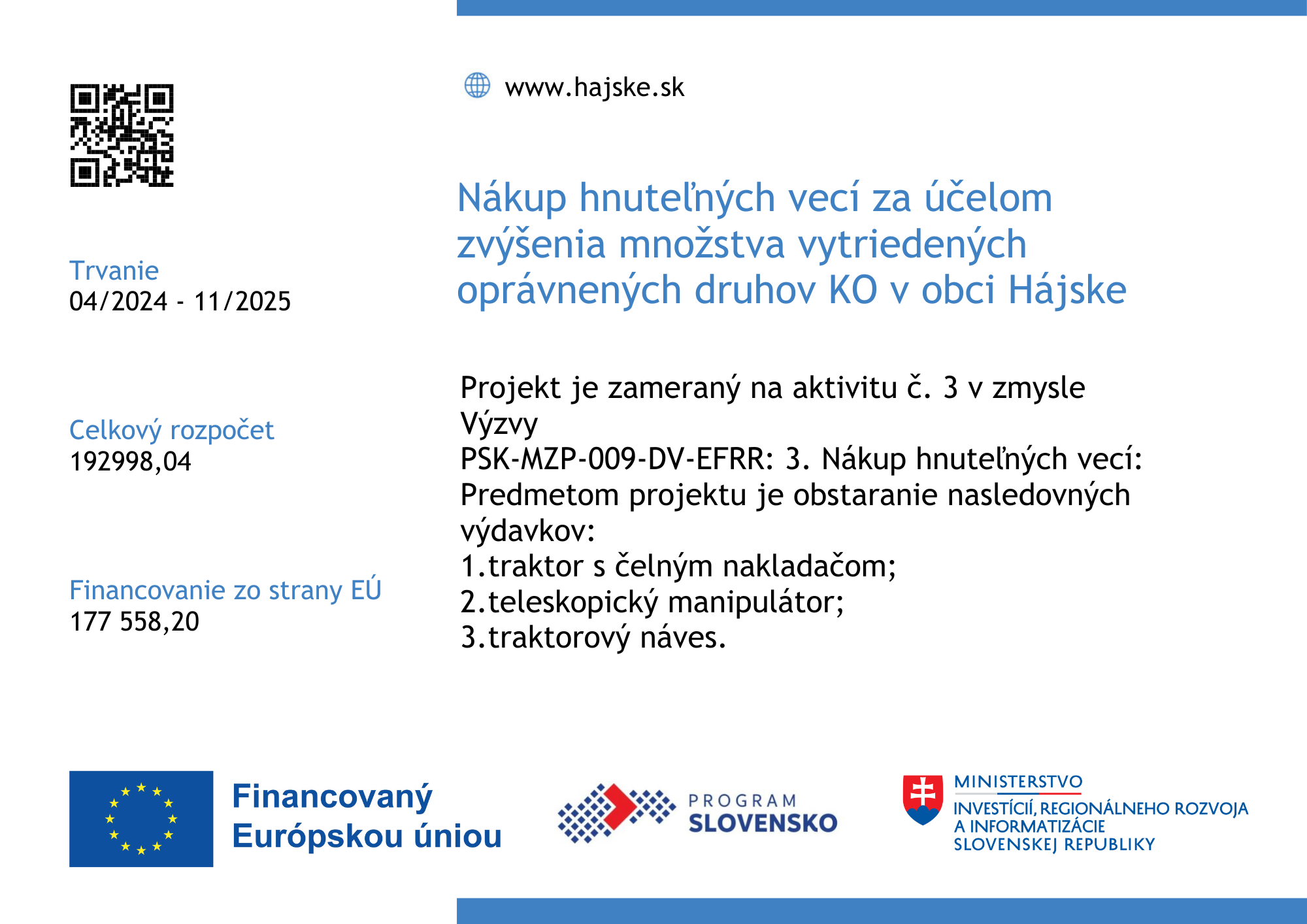 Nákup hnuteľných vecí za účelom zvýšenia množstva vytriedených oprávnených druhov KO v obci Hájske