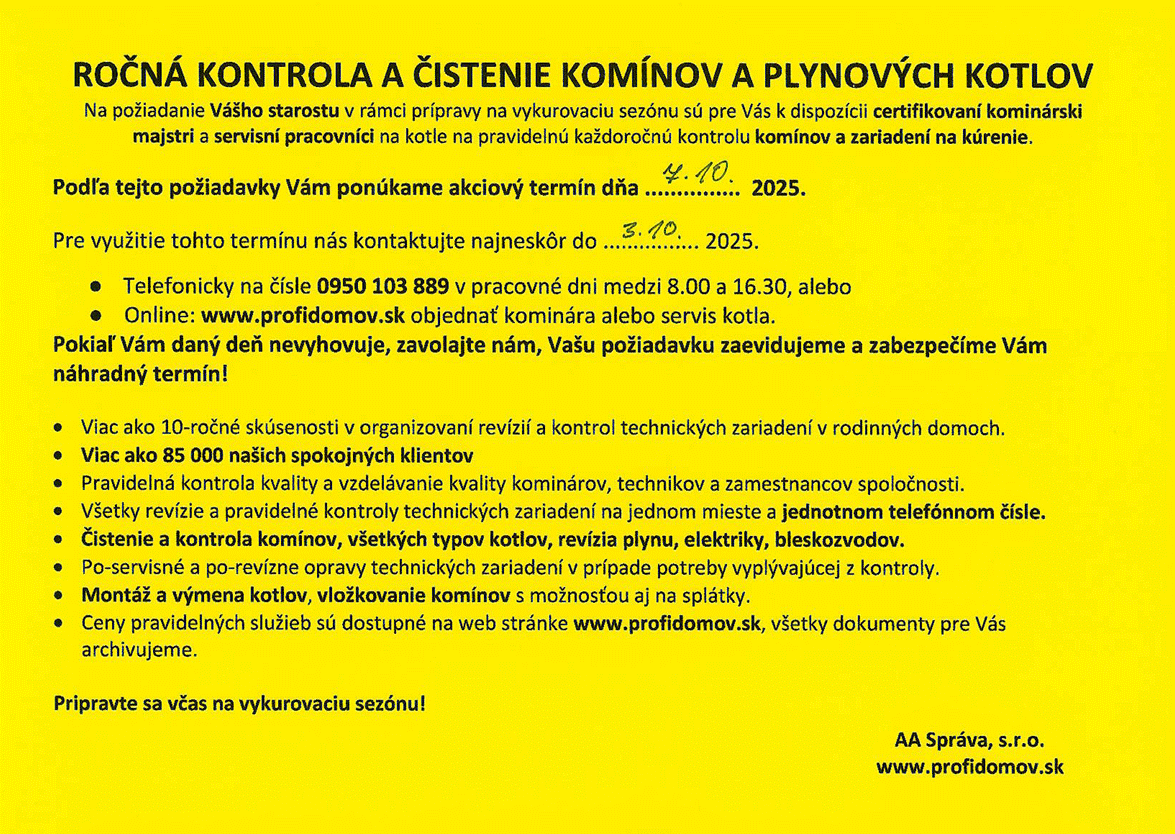 - pravidelná povinná kontrola a čistenie komína