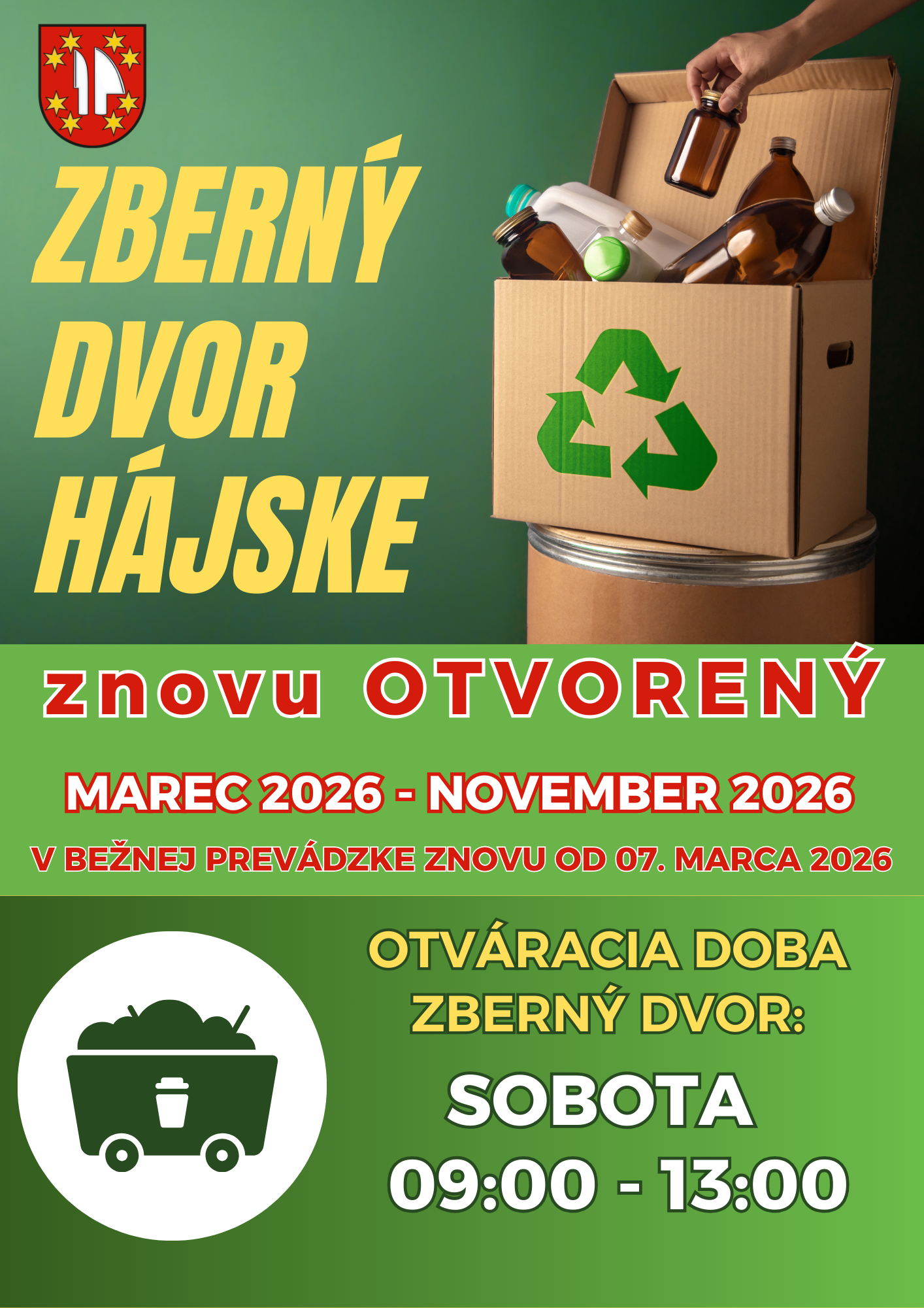 Oznámenie úrovne vytriedenia odpadov za rok 2025 v obci Hájske